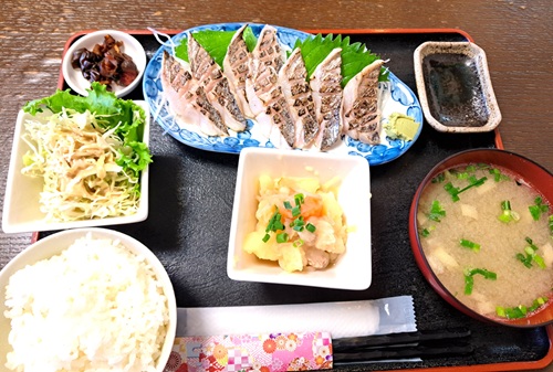 ダイニングキッチン えん で昼食です今日は 主人のリハビリ。先週 昼食をした ダイニングキッチン えん の日替定食が美味しかった他にも 色々なお刺身の日替定食メニューがあったので本日も また行ってきましたその時の海鮮の仕入れによって日替定食のメニューは変わってくるようですね。前回の日替わりメニューにはなかった 太刀魚。太刀魚炙り刺し って滅多に食べることがないので 頼んでみました! 肉厚の太刀魚の炙り刺し炙られているので 香ばしく太刀魚なので 淡白であっさりとしていて 美味しかったです主人も 前回は日替わりには無かった ふぐ!ふぐは主人の大好物です今回は 日替定食に ふぐ刺しを見つけ 迷うことなくふぐ刺し を注文しています。 てっさ(ふぐ刺し)だけでなく ふぐ皮も付いていました日替定食は 刺身の種類によって1400円~1600円程度のお値段これだけの枚数の てっさ が このお値段で食べることができとてもお得!?小鉢も 日によって変わっているのでしょう。今回も大満足な昼食になりましたまたお食事に行きましょう~ブログランキングに参加しています。よろしければ、クリックして応援をお願いします。にほんブログ村簡単料理ランキング