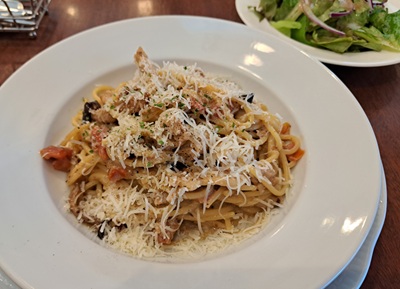 パスタ店でランチです買物へ出かけるついでに ランチも。数か月前に 主人が後輩からのお誘いで食事してきたというお店。結構美味しく デザートが付いたランチセットなどもあり“今度 連れて行ってあげるよ~” と言ってくれていて本日のランチに行ってきました人気店なので お昼前に到着しましたが店前の駐車場は空きなし・・・でも 周辺の3ヶ所ほどにも お店の駐車場がありそちらへ止めることができましたPaPas Mamas (パパスママス)広島市安佐南区上安1丁目1-1 橋本ビル1階店内も すでに多くの来店客の方達が食事を楽しまれています。予約をしていませんが空きのテーブル席があり 案内していただけました。スパゲティランチ・生パスタランチ・ピザランチ…などランチメニューがありそれらには サラダ・バケット・ドリンクが付いています主人は 前回も コースランチセット をいただいたのかな?サラダと4種の前菜盛り・バケット・ドリンク・デザート(ケーキ&アイス)付きです。メインは 16種類のパスタ または 本日のピザ から選択できます。サラダと4種の前菜盛り彩りキレイで これだけでも ボリュームがありますね私は パスタの中からチキン・きのこ・ほうれん草・コーンのクリームスパゲティトマト系のパスタ好きな主人はソーセージ・ベーコン・ピーマンのナポリタンドリンク食後にデザート!数種類あるデザートの中から選択。私は シフォンケーキ&抹茶アイス主人は ティラミス&バニラアイスサラダで野菜もしっかりと食べることができパスタは美味しくデザートもどれも美味しく 大満足休日は 予約しないと無理でしょうが今日のように平日なら お昼前に行くと 待つことなく食事ができそう?パスタの種類も多いし主人はピザも食べてみたいようなのでまた食事に行きましょう~ブログランキングに参加しています。よろしければ、クリックして応援をお願いします。にほんブログ村簡単料理ランキング