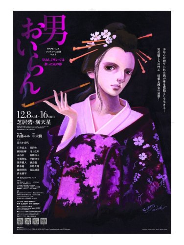 舞台「男おいらん」ポスターできました。なんと寺山修司さんの演劇の美術を担当されている宇野亜喜良さんの関係でもご活躍の、イラストレーターの野村直子さんが描いてくださいました!演出の申くんの人脈あってのこのポスターです。すばらしいですね(≧∇≦)..なにやら「男おいらん」の一部メンバーがイケメンイベントに参加することになりました(≧∇≦)/イベントの場所が赤坂なので、赤坂選抜組と読んでいるそうです。一緒に登場する他のイケメンユニットさんたちはまだ発表になってませんが・・・乞うご期待ですぞ(≧∇≦)☆【イベント名】男前live×『男おいらん』【日時】11/10(土)18:00開場18:30開演【料金】2500円別途ワンドリンク500円会場 赤坂元気劇場3F東京都港区赤坂3-17-1KDGビル三階男前liveと今年12月に行われる舞台『男おいらん』のコラボレーション!イケメンアイドル、イケメンアーティスト、注目の『男おいらん』選抜team。選りすぐりのイケメンを集めたイケメンスペシャルコラボ。<出演>090HYTnew graduate社会ノ窓「男おいらん」選抜and more...!?だそうです(≧∇≦)/男おいらんに興味あるかた!イケメンユニット群に興味あるかた、ぜひどうぞ!(予約なし当日受付のみのイベントです)さらに男おいらん出演者達が着物姿で早稲田大学学園祭に登場!コミュニティFMにも出演! 11/4 PM3〜 さらに!!!ほぼ全員の着ボイスも完成!明日以降に配信のお知らせがやってきます。そして!もうすぐPVも公開されます!なんだか事前の宣伝がすごすぎて、チケットも結構売れているそうです。みんなほんとによく宣伝活動がんばってる・・・(≧∇≦)☆ みなさまお席はお早めに♪ 舞台「男おいらん」気づいたら音楽担当さんもメイクさんもイケメン!なにやらイケメンまみれです。忙しくてあまり差し入れに行けないことがとても悔やまれるこのごろ!ある日の稽古風景どうぞ。いよいよ本格的なダンスの稽古もスタートし、みんなかなり真剣です。冒頭からびっくりする仕掛けがいろいろあるかも・・・今回の演出「すごい」です。舞台「男おいらん」くわしくはこちらチケット予約フォームはこちら。<連載中>・学研ママノート「6歳からの才能育て」(毎月第2土曜日更新)・朝日新聞出版dot.「ラブログ、なのかも。リターンズ」(毎週月曜日更新)私のケータイサイト私のツイッター(30000フォロワー)私のフェイスブックページ(2000フォロワー)私のGoogle+(1200フォロワー)※お仕事・取材関係のお問い合わせのある方はこちらへどうぞ。※または facebook もしくは ameba のメッセージからお問い合わせください。