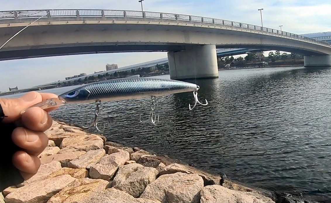 雨は昼まで!? そんなんウソウソ😅 昼からは降水確率ゼロ!? そんなことあるかいなぁ😅 一日中降っとるガナっ💥 宇宙STの野口さんと喋れる時代に 天気予報アプリもそこまで外すかねぇ〜💦 誰一人釣りしてないどころか 誰一人として歩いてないやん お陰で本日の芦屋浜水道はまるで 異次元に迷い込んだかの様な静けさです スタートは三次元世界での13時から🎣 無風のドシャローでトップゲームです 新しいトップペンシルプラグ 【ドランクレイジーのタイロット】 をキャストしながら石畳みを進みます このペンシル、、、、 正直言うて良くなーーーい😅 ソリッドですが中身はウレタンなども 含まれてるみたいですが その分、飛びも期待してたほどではなく しかもアクションも僕にはイマイチ、、、😅 垂直浮きなんですがとにかくイマイチ、、😅 かなりラインスラッグを使わないと上手く 動いてくれません👎(ベタ凪やのに) ボートからボイル打ちなどには良いのでは? って感じです。 このルアーを使ってつくづく思ったのは 【ティムコのレッドペッパー】が 非常に優等生なんだということです😄 なのでこのルアーは買い足す事なーーし👎 今日は暖かい上に風もなくガチ凪でした トップ投げてて気持ちよかったです😄 でも雨が降りっぱなしだったので 橋の下で橋脚狙いにしました🎯 DUOの【レアリスジャークベイト 130F】 ハデアタマがでたのでひとつ買ってました😅 フローティングしかなかったのが残念です もちろんトロ引きしたりトゥイッチしたりと 色々やりましたがノーチェイスです😭 このルアーの感想はフローティングのせいか 飛ばないですねっ👎 でもアクションのキレは素晴らしいので 使ってて楽しいルアーでした。 それにフックサークルが付きにくいです😄 息子にもらったこんなルアーも試し投げ。。 【S Quad 120】です。 フローティングと言うよりS字ウェイクです このままだとシーバスには使いにくそうなので フロント寄りにウエイト貼り付けました ほんだら水面から約30cmをフラフラしてくれます ウエイト貼っても泳ぎはええ感じです。。 なんでもこのルアーはロマンメイドの武山さんが アドバイザーとして制作に関わってるみたい そのお陰なのか?どうかは?知りませんが 泳ぎはとてもナイスですねっ👍👍 泳ぎを見てても楽しいルアーですよ♪♪ 夏はウエイト外してシャローで使えますね😍 その後は スーパーで買った半額オニギリ食べて コンビニ行ってヒーコちゃん飲んで それから東側ホテル裏まで移動して 1発大物狙いもやってみました (昨日石畳の上をマイワシが泳いでたので😅) その時使ったルアーは 【アズーロのトゥルーサーディン2】です しかも新色のライブベイトカラーの キビナゴカラーです。。 今まではメジャークラフトのシーバスロッド トリプルクロス86MLで投げてましたが 今日はモレーナでキャストしました。 その結果このルアーは思ってた以上に よく飛ぶルアーだということがわかった😄 今まで使ってたトリプルクロスが悪かった ということなのかなぁ❓❓ 確かにトリプルクロスはキャスト時 ティップがブレブレなので、、😂 それに対してモレーナはシャキシャキなので 垂らしの長さや(約30cm)リリースポイントを しっかり把握することで オーバーキャストで全くブレることなく キレイに一直線で飛んでいきます🚀 トゥルーサーディン2が気持ち良過ぎて 時が経つのも忘れて投げまくりました😄 気が付くと、、、 もう真っ暗になりかけです。。 ヘッドライトもないので今日はここまで🏁 ちなみにこの時間でも全く寒くありません 手袋なしでベイトリール使えるぐらいでしたよ 釣れない日でも釣り場に立って遊んでると やっぱり楽しいし頭がスッキリします💡 今年は今のところ身体も調子よさげなので なるべく釣り座に立って遊ぼうと思います ホンマに寒い時はイヤーよ❄️