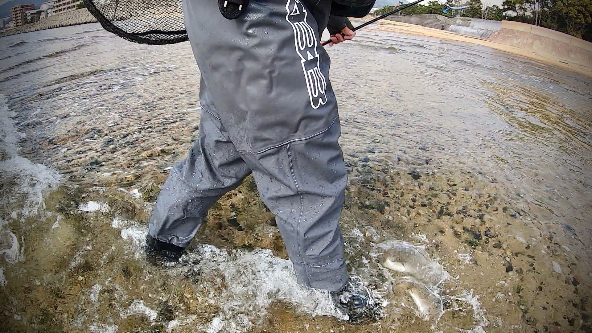 ココ、冬の芦屋浜にしては少し濁り気味です