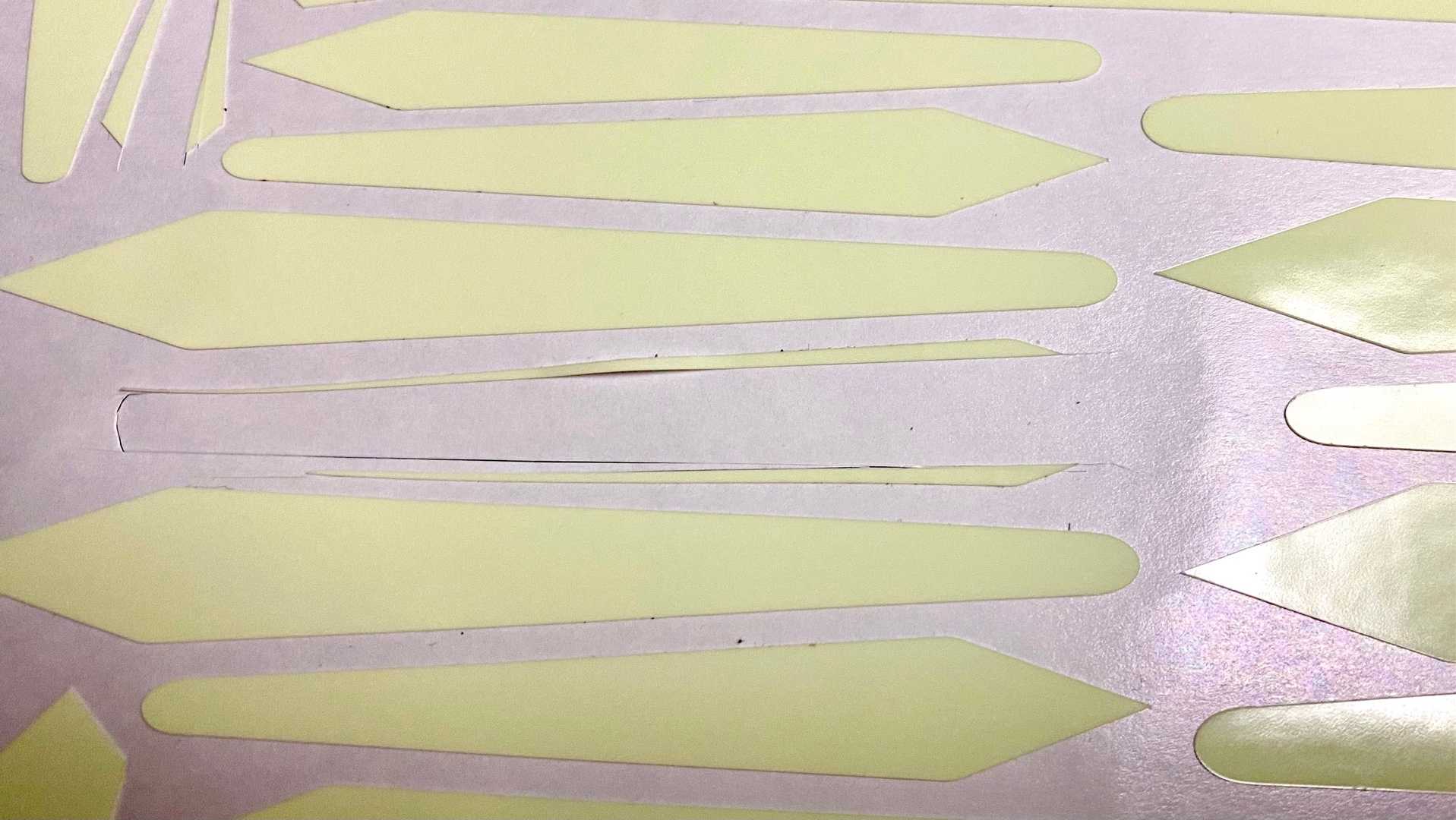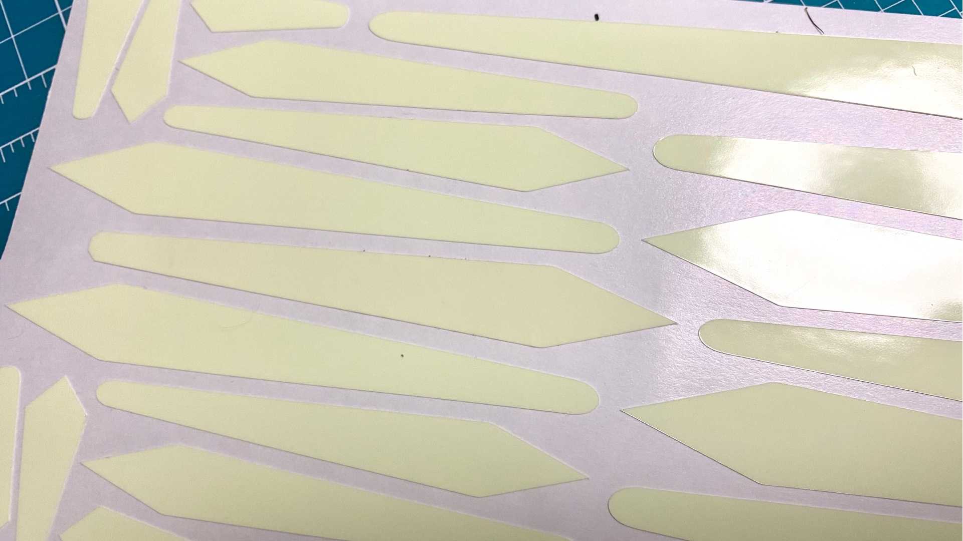 (後日、他の色も貼りましたがやっぱり以前のマーカーと素材が変わってますねっ。でもグロー以外は柔らかいので普通に貼りやすいです、グローだけが硬くて少し厚いので貼りにくいですねっ)