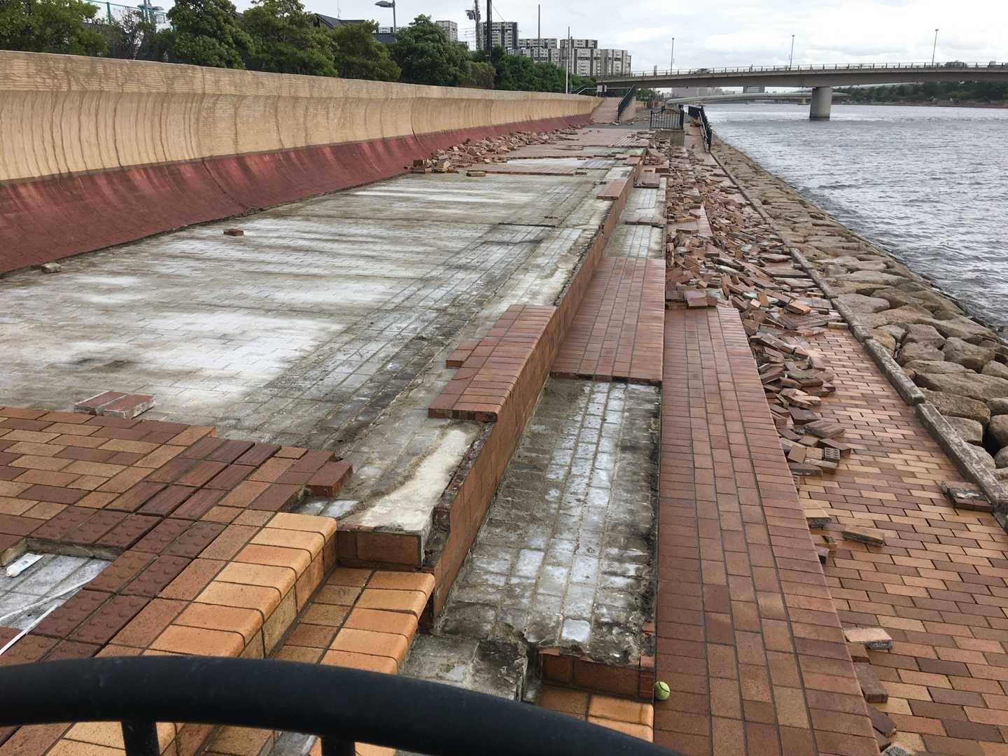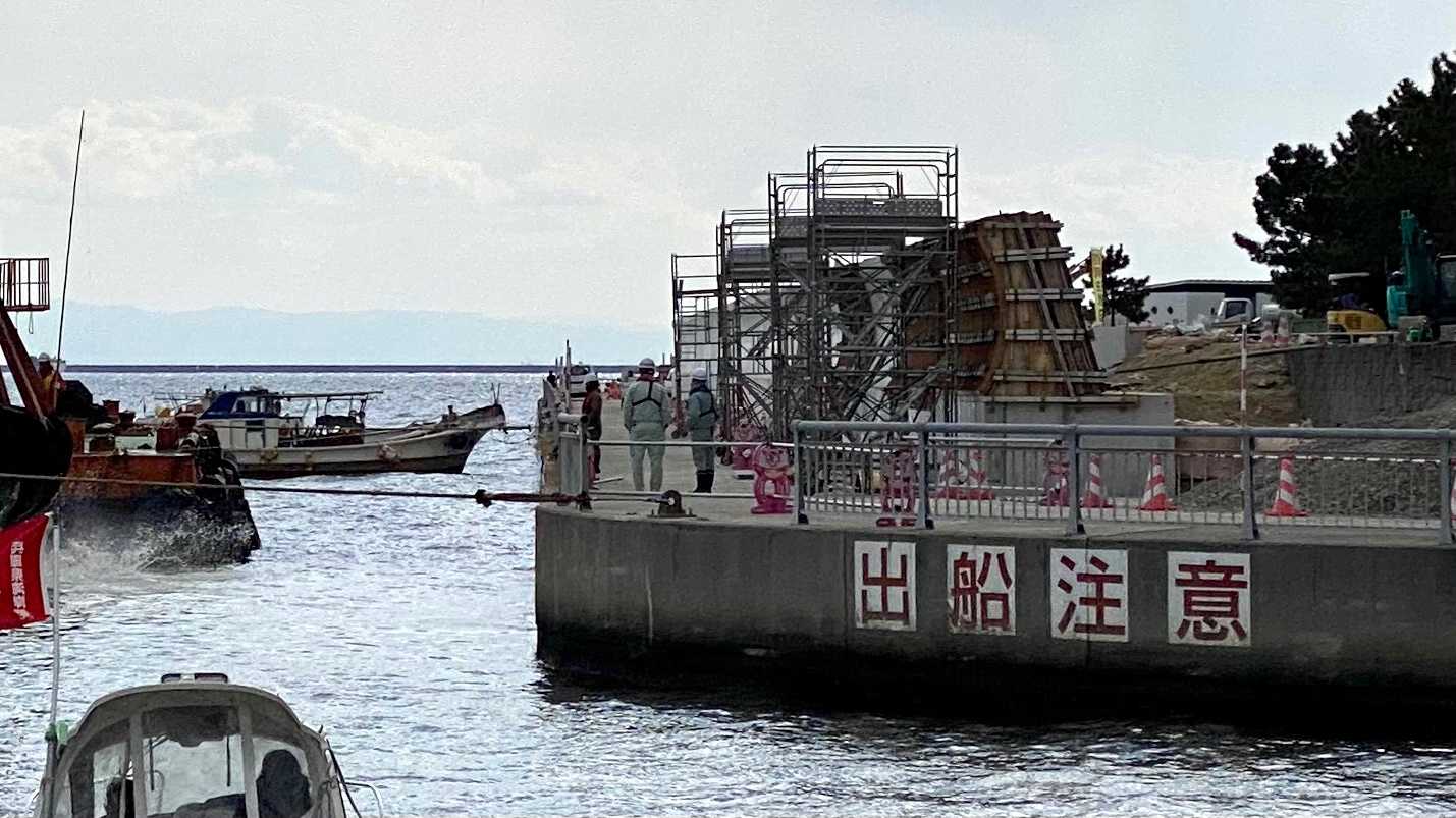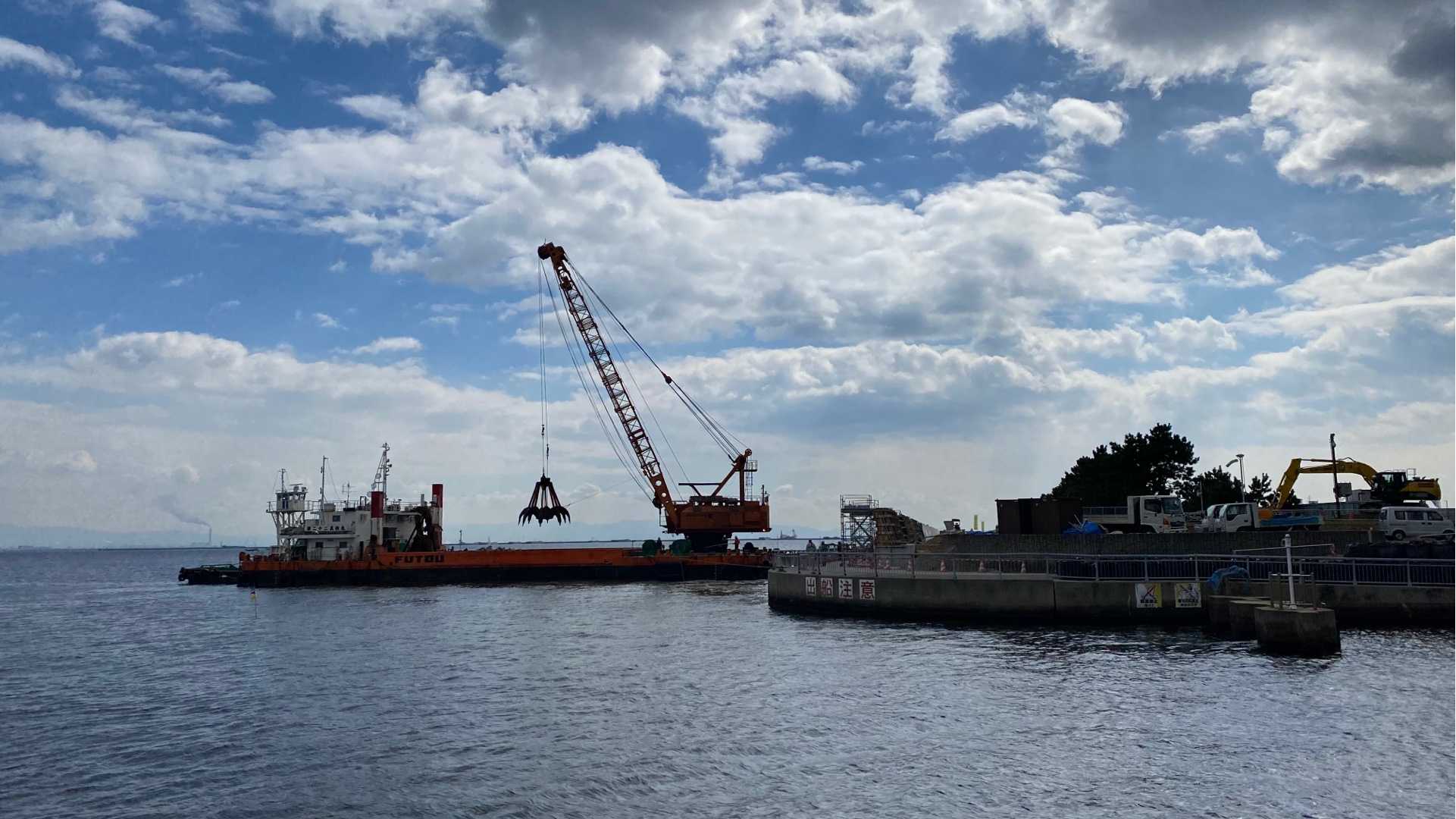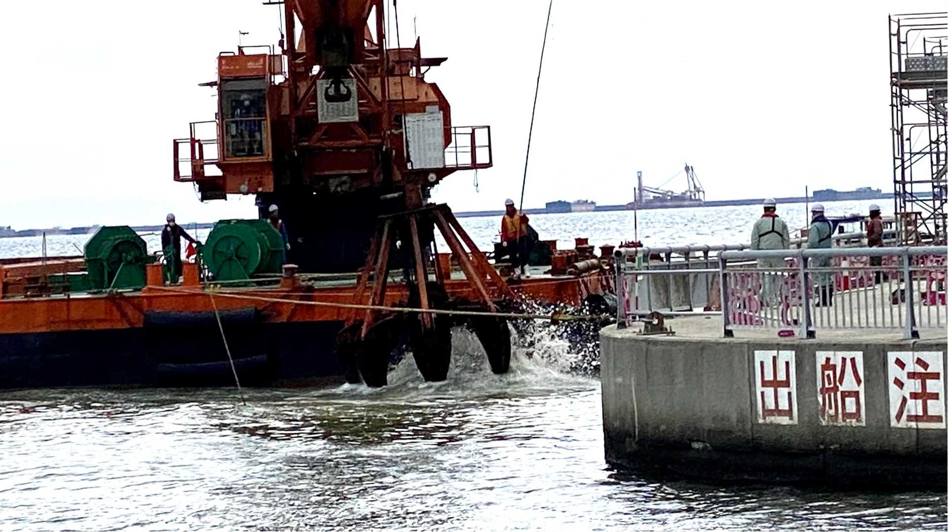 ゴツゴツの岩や砂利をどんどん沈めてます