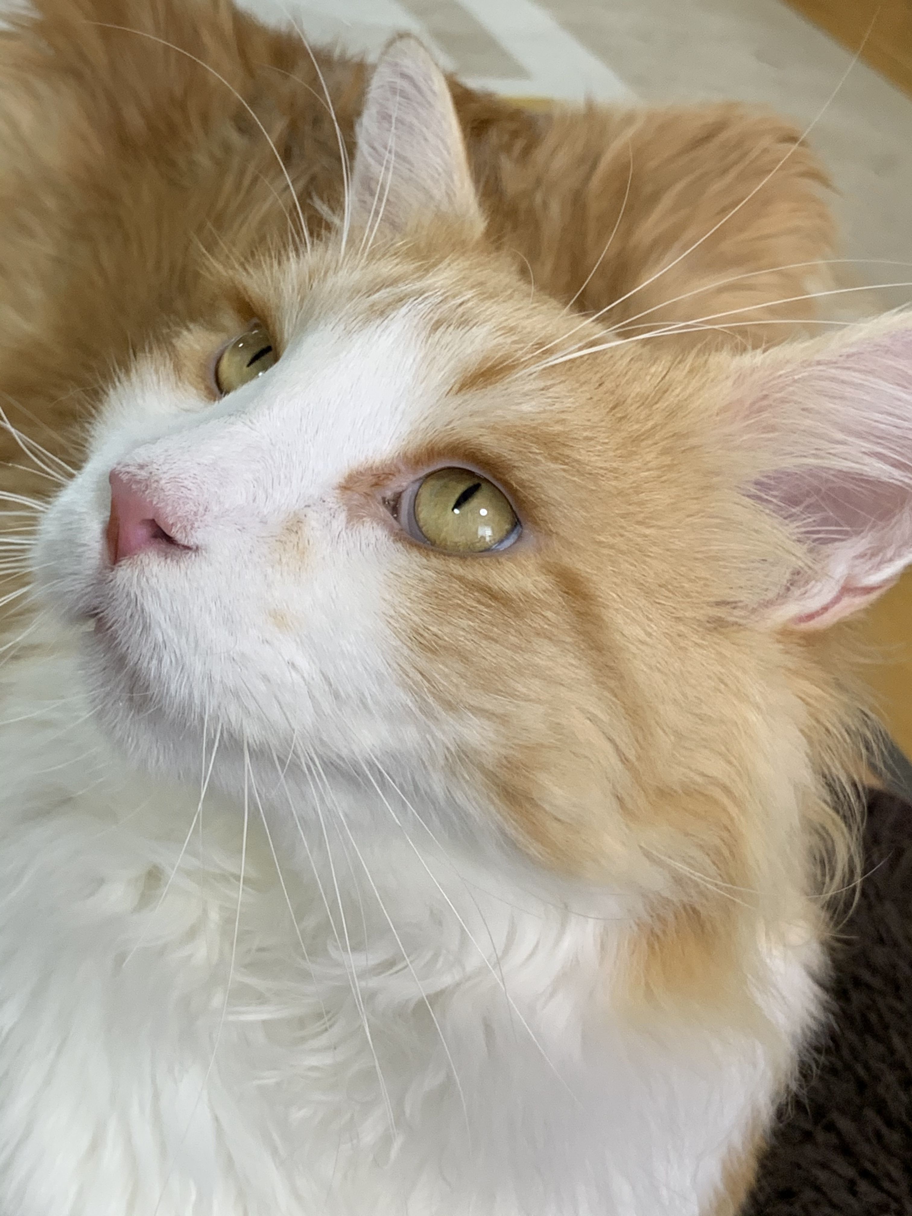 れもんだよ同じ顔に見えるけど今日の朝のボクたまには違う顔をしてみなさいーーーと言われるけど、出来ませんそれならば・・・角度を変えて「カシャ」これはどう??もたれかかってみたーー話は変わり、関節のサプリを飲んで早いもので2ヶ月近く経過した。先生はサプリって半年様子を見ないと何とも言えないって言うけれど・・・ますます、足がガックンガックン・・・おかーさんがサポーターでもしてみる??と言うよ今度先生に聞いてみるって言ってたよ。サポーターって「フレーフレー」の方じゃなくて足をカバーするサポータだよ→そんなの知ってるわぃ