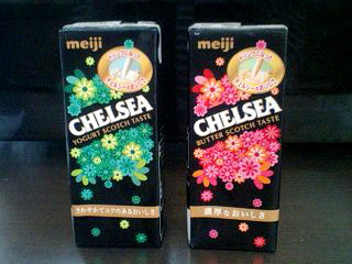 コンビニで見かけてものすごく気になったので買ってみました。正式な商品名は左:CHELSEA YOGURT SCOTCH TASTE(チェルシー ヨーグルト スカッチ テイスト)右:CHELSEA BUTTER SCOTCH TASTE(チェルシー バター スカッチ テイスト)一目見て「ああ、チェルシーがドリンクに…」というのがわかります。ヨーグルトは乳酸菌みたいな味なのは想像付きますが、じゃあバタースカッチの方は…?というと怖くて赤い方は飲む気になれなかったのですが…毒を食らわば皿まで。両方飲まないでどうする!レッツチャレンジ!ヨーグルトスカッチの方は予想通り、ヨーグルトドリンクです。でもかなり味濃い目。もろにチェルシー溶かしました・な味wで、懸念の的・バタースカッチですが…バタードリンクだったらどうしようドキドキ…という思いとはうらはらに実はキャラメルドリンクwしかしヨーグルトと同様、味濃い~♪いや好きだけどね。二つを比べると、やっぱりヨーグルトの方がややあっさりめです。けっこう当たりなドリンクでした。自分的にw何か腹にずっしり来る飲み物を飲みたい時にはコレですね!