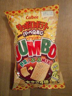 そのまんまw袋もでかいけど、中身もでかかった! 味は普通のサッポロポテトバーベキュー。でかいから逆に食べづらい!ネタにはいいけど、一口サイズの方が食べやすい~( ̄∇ ̄;)