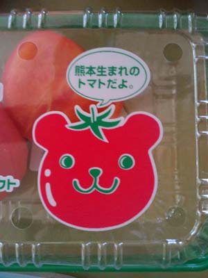ウチでいつも買ってるトマトのパッケージなんですが…なんか可愛い…なんだろう…熊とトマトを合体させたという、べったべたなイラストなのに何故か憎めません。曲線とパーツのバランスが妙にツボに入ります。なので、ウチで買うトマトは基本的にコレですwちょっと季節的に高いんだけど…