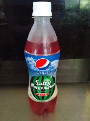 来ました、変な味シリーズ。今年は塩スイカだそうです。相変わらず「言われないとわからない味」でしたwそして「ペプシじゃなくてもいいんじゃね?」な感じです。まぁそこそこ美味しかったからいいですけど。