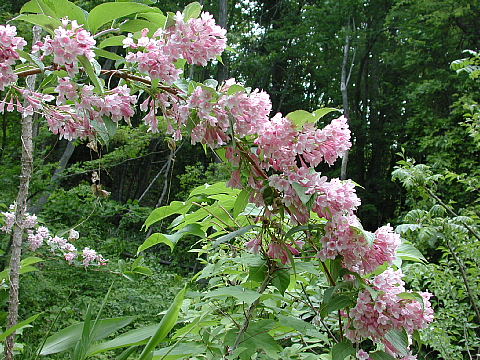 雨が上がった。そして思っていたより早く早く雲は切れた。出かけよう。どこへ・・? どこかへ。今まで行ったことのない場所を探していたら、お。道がある。ここから先は行ったことがない。行ってみよう。途中、何箇所か「自動車廃棄物」の山があった。窓を開けて運転していたら「キビタキ」の声が聞こえた。ここは、どこだろう。光を浴びてタンポポの種が開きはじめている。ふと目の前の木を見たら、ぽっ! ぽっ!と花粉を飛ばしている。雨のあと、太陽の光の中で、気持ちよさそうに。ぽっ! これは・・コウゾだよ。でも以前に見たコウゾと違う。雌雄同株だ!*「おらはよ。コゾウんときはよ。コマ回す紐なんて買って貰えなかったからよ。石でとんとん叩いてよ、そうすると、するするっと皮がむけるからよ。それで縄なじりしてよ。コマ回す紐にしたんだ。」山で知り合いのじいさんに「コウゾ」の話しをすると話しが始まった。「それでよ。昔はあっちにもこっちにも「紙屋」があった。豆腐屋と紙屋はよ。作るのが手間かかるからよ。それで紙は障子紙と種子ってあれだ。蚕様の紙を売ると現金収入になったからよ。(延々)」「麻なんか植えられなかったからよ。牛のケツびしびし叩くのによ。普通の縄だともたねえからよ。コウゾでよぉ。それで牛がよ・・(延々)」・・延々と続く話をいつまでもうんうんと聞いていると、「ほれ。この堀、ずーーっと降りたところによ。ちっと広い所によ、シジミいっぱい、いるからよ。んじゃ、さいなら。」*そんな記憶もあったっけ。コウゾがあるということは。人家が近くにある筈だ。少し走ったら集落跡があった。そしてまたうねうね登っていって後をみおろしたら、おお。フジとにクズに覆われている、広大なかつての桑畑!桑も人の足音を聞かなくなって久しいのだろう。あちらこちらに、つるの波間に島のように高くなっている。*ところで。雌雄同株って書いたけど。雄花と雌花はどっちでしょう。桑の実を思い出してね。答えは明日。クリックしてね。人気blogランキングへ。とは言いません。(笑)実は赤いひらひらがあるのが雌花。黒いぼちぼちが雄花。この黒い雄花が花粉をぽっ!ぽっ!と吐くの。眺めてると時間がたつのも忘れてしまう。実は食べられると書いてある本やデータがあるけど、おぃらは絶対におすすめしない。それは、舌につきささるような感じがした「苦い思い出」があるから。でも、葉ならだいじょうぶ。ぱく!赤い実をホワイトリカーに漬けてもいいね。「本物の」和紙はすごいね。何年持つんだろう。嘆きの桑畑の渚にて。蕪村の新しい句が見つかったんだって。クリックしてね!!人気blogランキングへ!