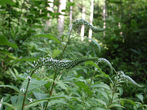 おぃらが買った山は某キャンプ場のすぐ近くです。川で子供たちが泳いでました。大人も泳いでました。キモチよさそうに飛び込みしてました。そのかたわらからおぃらは、悶々とした気分を払うべく夏山に入りました。ミドリシジミがキラキラ光ってます。昔の蟲屋さんは「ゼフ」と呼んでました。キラキラした蝶を眺めていると、カモシカが現れました。デジカメを構えたら逃げられました。歩くこと3分、わが山はすっかり夏です。草がぼーぼーです。一面にドクダミが元気に花を咲かせています。刈ったはずの笹薮も元気に芽を一面に出しています。特産クレマチスもびゅんびゅんつるを伸ばしています。造園屋さんにご紹介していただいたクルミの木が大樹になるまで草を刈り続けなければなりません。とは言っても、すいすいと鎌をふり続けること1時間、床屋さんよりもさっぱりしましたよ「こもれび広場」。倒れている木が今年はどこまで腐ってくれるか。秋の作業が楽しみです。ところで、夏の山は完全防備してから行かないと危険です。熱帯病理学を学んだ人はわかるでしょ。「ツツガムシ」です。もっと怖いのは「くまさん」なんですが、適当に草を刈りながら上ったら・・「けものみち」が急に開けました。そして咲いていました。賢人は猫の尻尾は踏むかもしれませんけど虎の尾は踏みませんよね。(笑)オカトラノオです。ひゅるるんとした尻尾みたいな花が咲きはじめています。オカトラノオの学名を検索したらつぎのような記述がありました。-----Lysimachia f.<人名 Thrace(マケドニア)王 Lysimachion の名を称えたもの。又はlysis(解(ほど)ける)+mache(競争、争い)。伝説によるとLysimachus王は、猛り狂った牡牛に襲われ、あわやという時にこの植物を振ったら牛が鎮まったという。サクラソウ科(701203030)オカトラノオ属。-----草を刈ったらゴミムシが出るわ出るわ。ある程度刈ったところで、よしよしと振り返るとううむ。「できる!」蟲屋には「ライトトラップ」といういにしえの技があります。重い発電機でなくともガソリンランタンでいけるかもしれない。そういえば最近、仲間のカミキリ屋、元気がないから呼んでみるか。オカトラノオの花はゆらりゆらり風にゆられています。そして花は風の波を捕らえたかのように必然としてゆったりと的確な形態の花になるのでした。ライトトラップ ひさしぶりだな。蛾の採集、最近してないけどピカピカ光るやつをみつけた☆ライトトラップ 蟲まみれになるのが苦痛でない人は楽しい一夜です。そんなの絶対ヤダ! という人も蟲にまみれて悟りを開いてみたぃぃ~ ☆ という人もナウシカになりたい☆ 人もこわいもの見たさに覗いてみたい☆ 人も☆クリックしてね☆人気blogランキングへ