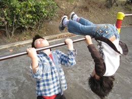 鉄棒は前方支持回転は出来るが逆上がりが出来ない。近くにいた小学校