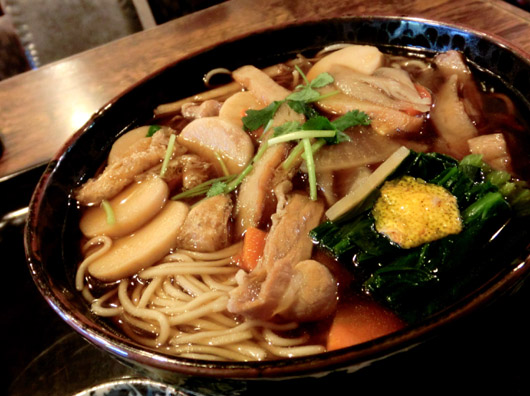 初めて注文した 「けんちんそば」 は、私好みの食べ物であった♪熊谷市銀座の蕎麦店・藪伊豆さん! 評判良いお店なのに、行きそびれちゃってて(^^;見栄子SHOWも1週間後に迫ったことだし、ここから2月中旬にかけての間に会場のくまがや館から歩いて行けるエリアのお店を、何軒か話題にしていきましょうかね~♪ていうか、展示会が始まるとそっちの話題が多くなっちゃうと思うから今のうちにガンガン!グルメ情報をサービスしときましょ~(結構気ィ使うんだこの時期は…展示会来て下った方にも、そんなん興味ナイ人にも…)ここはホテルマロウドインの裏手、遠方から来るお客さんも多いんですって♪藪伊豆さんは東京が総本店、いわゆる 「のれん分け」 ってヤツかい?店頭にもある程度のメニュー表示が…カレー南ばんや天ぷらそばもいいね♪でも今日はアッサリ目の気分だから、別のものにしようかな?ちょうど12時頃だったかな…既に先客が数組。後からもお客さんが来て、やや小さなテーブル席のスペースは一杯に!でもその後にまたお客さん、ここで実は奥にもお座敷があるということを知る♪メニューは…安いものは 「もりそば」 520円から!定番のきつね・たぬきに、鴨なんばん、にしん、玉子とじ、からみ…冬は牡蠣もあるのね?今日は寒いから、あったかいお蕎麦にしよう! しかも、今までの人生で食したことのない 「けんちんそば」 840円!おっと~彩りが綺麗ですよ? そしてこの具材は、汁モノ好きの魂を揺さぶる感じ十勝産の蕎麦からつくる細打ちの麺は、限りなく白に近いお色でもこの舌触りとお味は、確かにお蕎麦なのです♪温かいお汁にしんなりと馴染んで、やさしい味…これは冷たいのも食べてみたいね!そして、関東風だけどやや色の淡いお汁も、程良くダシがきいてて美味しい~(^^)よく味のしみて柔らかくなったけんちんの具は、大根・人参・里芋・椎茸・さつまあげ・油あげ・それに豚肉! ほうれん草の上に可愛く置かれた柚子と、ちょこっと入った豚肉がまた良い風味を添えてくれるんだな~♪ トッピングのミツバも好物!おっと、トッピングといえばネギもあったね…このあと、ちゃんとのせたよモチロン唐辛子はたっぷり使いますよ~卓上には一味と七味の両方が置かれてる♪これらをかけて、より私好みの汁にして…ごっそ~さん♪ この汁はごく自然に飲み干しちゃった感じお野菜に味がしみてたから、ヘルシーでも 「食べた!」 感があったよ。藪伊豆さんは土曜休! あとで外観写真を拡大して見て気付いたんだけど…こんな場所だから駐車場ナイと思ってたけど、実は2軒挟んだ左に3台分あったのね(^^;あ、ここは一方通行の道なので17号側からは入れないよ~。※このブログはあくまで筆者の都合に合わせて自主的&自費で運営する 「個人ブログ」 です。お店関係のより詳しい情報は各店に直接お問合せ下さい。 リクエストもお受け出来ません。コメント欄では、悪口・他店のクチコミ情報・本題と無関係な話のみの書き込みは御遠慮下さい。別の話題には、掲示板がわりのコチラのコメントスペースをご利用ください。