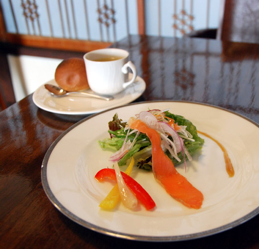 この辺りの古民家風カフェとしては比較的古参だよね、こちら熊谷市宮町のカフェドリッチさん! この支店の上にあるカフェは、未掲載だったね。最近クルマ目線な行動が多くなりがちだから、この冬は電車の駅からも近いお店をなるべく多くご紹介する予定でいますね~! 婦女子向けも、オッサン向けもねリッチさんは本店が熊谷駅南口方面(直近掲載コチラ)、そこからまっすぐ北・市役所近くに支店があるのだよね…支店のほうはブログ1年目に持ち帰りケーキを掲載しているけれど、あまりに古いので敢えてリンクは張らないよ~(^^;で、支店のカフェスペースも何度か行ってるのに、色々あって掲載後回しにしちゃって。これが宮町の支店、駐車場が無いかわりに自転車がこんなに…ランチ時だしねん、この写真撮ってる時に前を自転車で横切った男性、見知った御方だったような…気付くのが一瞬遅れて、ご挨拶できなくてごめんなさい~(^^;まずは掲載しそびれの古い画像から…え~と確かこのくらいの時期に行ったような?おお、あったあった!2階でお茶した写真! うわっ2007年8月かいっ、4年半前(^^;オレンジのケーキにアイスティーを付けてる、そうだ…かなり暑い日だったんだ。写真フォルダを見ると、館林美術館に行ったあと熊谷へ戻ってココへ寄ってる!この3日後、熊谷市はあの最高気温40.9度を記録することに…懐かしい♪これは2009年3月、3階にお邪魔してる…この時は目上の方々とご一緒だったから中途半端に食事の途中から、遠慮しつつ急いで写真撮ってるわ(^^;メインはアラビアータにしたんだっけ、細麺&ピリ辛でトマトソースがた~っぷり(^^)で、デザート付きにしたんだな…クレームブリュレかな?可愛い♪そして先日改めて、久しぶりの訪問!基本の 「Aランチ」 は950円 (予約しておけばプチデザートのオマケつき)、1200円の 「Bランチ」 だとデザートまで付くんだよね…モチロンこっちで(^^)ということで、2階席で~す♪ 他のお客さんが来る前に和風の内装にクラシカルな椅子&テーブル、BGMもクラシック…この条件は、カフェとして好きなタイプなんだな~(^^)でも1人だと何となく写真撮りづらいというか…そのへんが保留になっちゃった理由かな(^^;まずは7種類から選べるオードブルサラダは 「野菜のマリネとスモークサーモン」 で♪彩りがきれい、さ~っと長いサーモンはとっても柔らか。あ、手前の白くてコロッとしたのは…らっきょう? 甘くてカリカリ、クセがないね(^^)細く刻んだシャキシャキしたのはセロリかな、この1皿は何気に多品目だよ。こ~んがり焼かれた丸いパンと、タマネギ&キャベツのスープは、ランチに標準装備。スープはハッキリと濃い目の味がついてて、お野菜もとろりと煮込んである♪小さなカップでもシッカリと 「スープ飲みました!」 感が味わえる、堅実なお味ねメインは、パスタ中心&ピザやドリアなどの10種類以上から選べるのだよね…今回は熱いものが欲しかったので 「グラタン風ドリア」 で♪やや控えめな大きさの器で、グツグツボコボコいってる状態で出てきましたよ~!グラタンの下からパスタを引きずり出し…おお!とってもクリーミーで、熱いけどやさしい味♪トッピングのチーズが嬉しいね、タバスコがあるとなお嬉しいんだけど(^^)デザート盛り合わせは、苺のケーキとドライフルーツ入りケーキ、それからややドライな感じの甘くてホロリとした焼き菓子♪カスタードクリームが敷かれているので、しっかり絡めて食べましょ~飲み物はブレンドコーヒーで…ん、このちっちゃいお皿は?自家製コーヒーゼリーのサービスですと!? わ~いわ~い♪♪最近こうなの? それともラッキーDAY??濃いのと淡いので2色あってお洒落だね、ではミルクをかけて…甘さは控えめ、ミルクつけてもサッパリと食べられるね。 淡い方は本当にほんのり味♪ランチは確か平日のみで11:30~14:45、休日はケーキとお茶はOKだったかと…そのへん前と変わってないかな?? まあお店に聞いてみて(^^;9時~11時はモーニングもやってるよ(^^)ところでリッチさんは本店看板に 「カフェ・ド・リッチ」 って書いてあるけどIタウンページには 「カフェードリッチ」 と…今更ながら、本当はどっちなんじゃ??※このブログはあくまで筆者の都合に合わせて自主的&自費で運営する 「個人ブログ」 です。お店関係のより詳しい情報は各店に直接お問合せ下さい。 リクエストもお受け出来ません。コメント欄では、悪口・他店のクチコミ情報・本題と無関係な話のみの書き込みは御遠慮下さい。別の話題には、掲示板がわりのコチラのコメントスペースをご利用ください。
