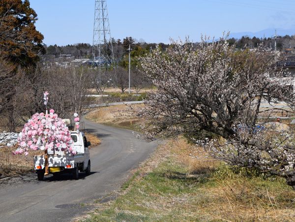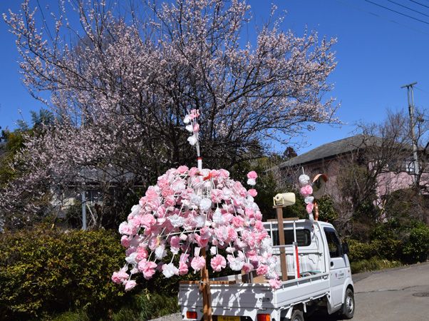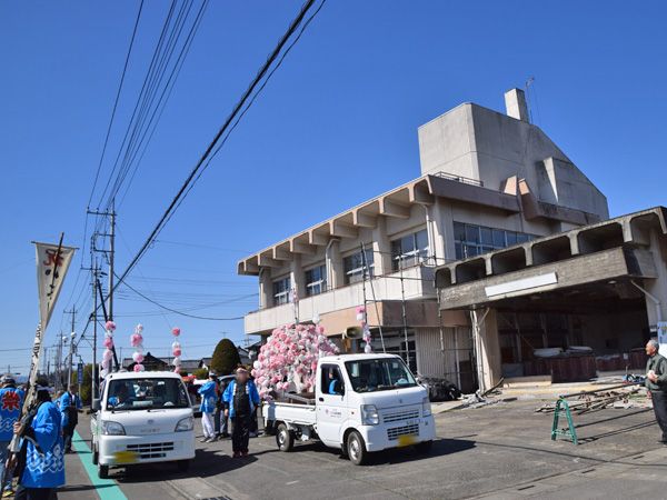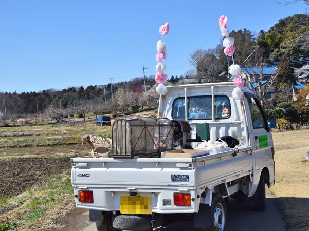 軽トラ3台(花鉾&スピーカー、ポン菓子機、食品かな)と