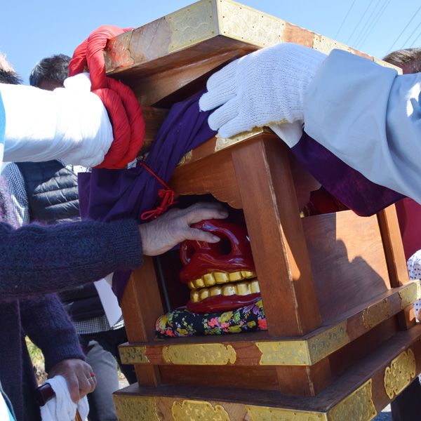 「お獅子様を撫でると、頭が良くなるんだよ!」