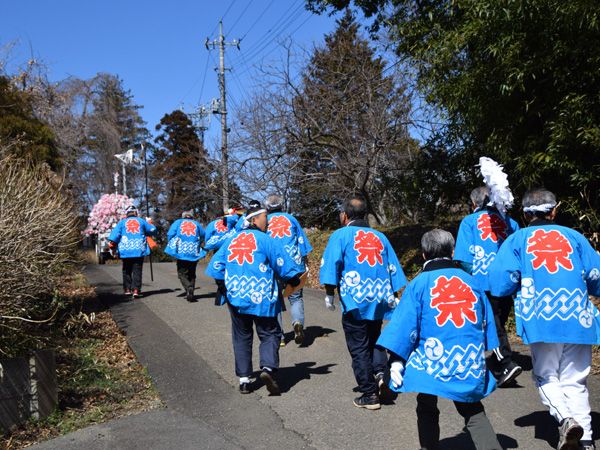 11時過ぎ、若連さん御一行は小さな山の中腹にある高根神社から降りて