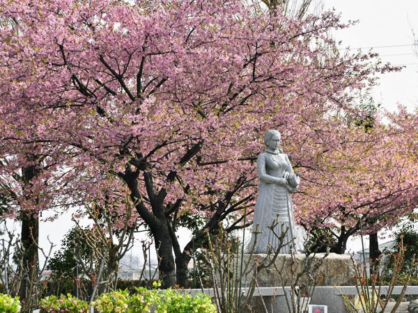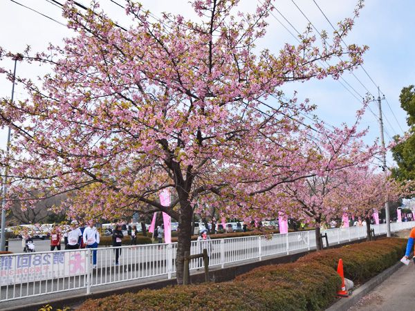 園内や外周の河津桜も程良い咲き具合、天気もさくらマラソン日より(^^)