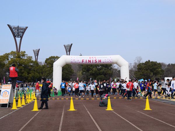 ハーフや5kmの部が出発してから会場に着くようなタイミングだったけど