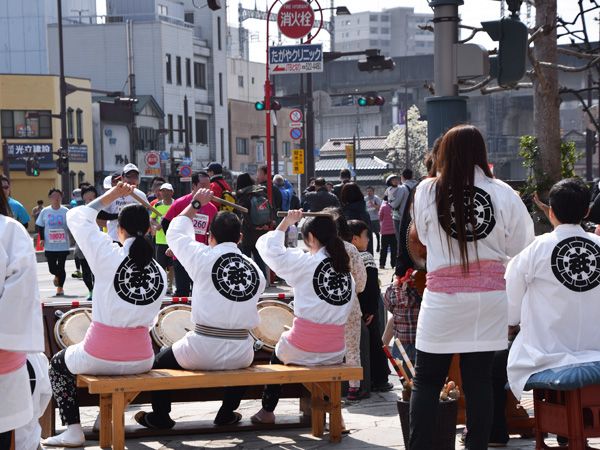 公園脇のスタート地点近くでは、今年も祇園会さんがお囃子で応援。