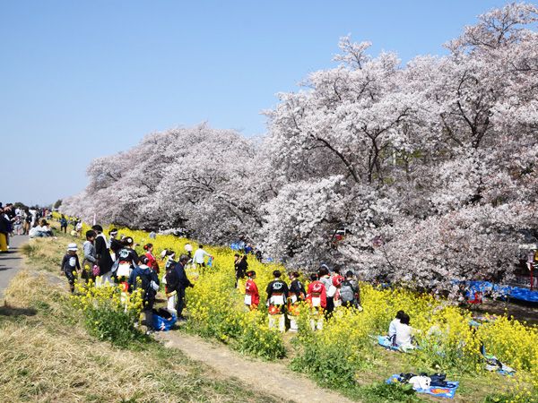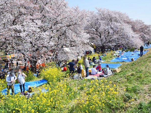 熊谷桜堤はこんな感じ、日曜日なので花見客で大賑わいですな(^^)