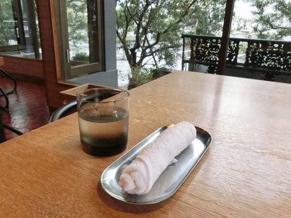 ほんのりイイ香りがする、キュッと固く巻いた温かいおしぼり。