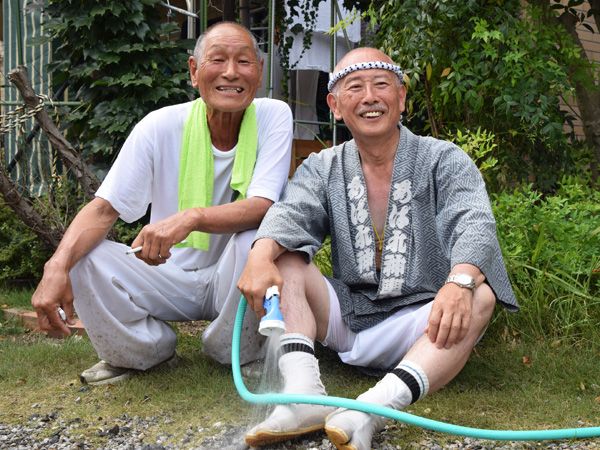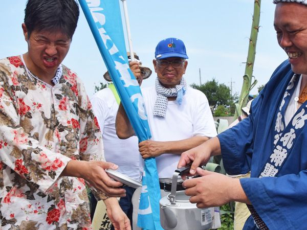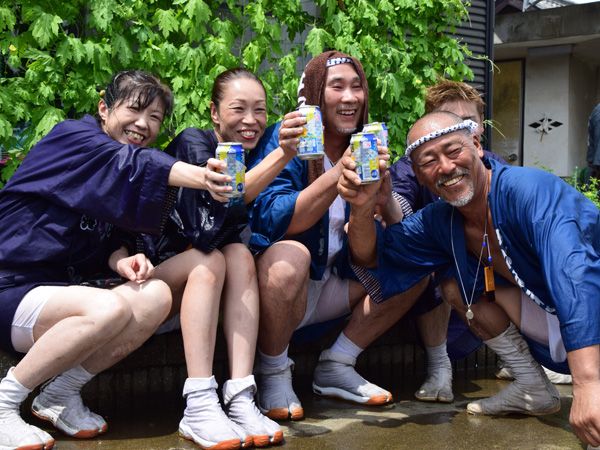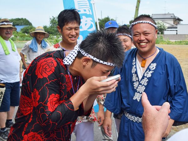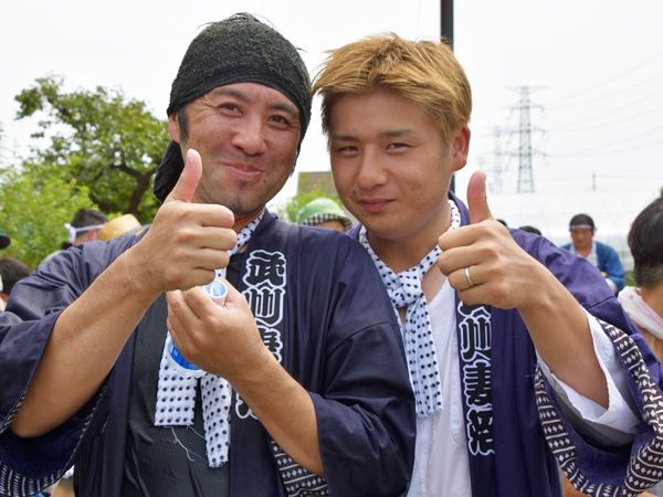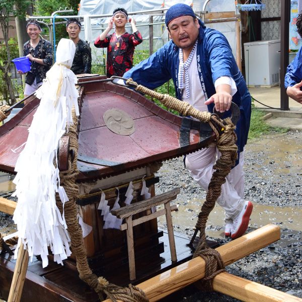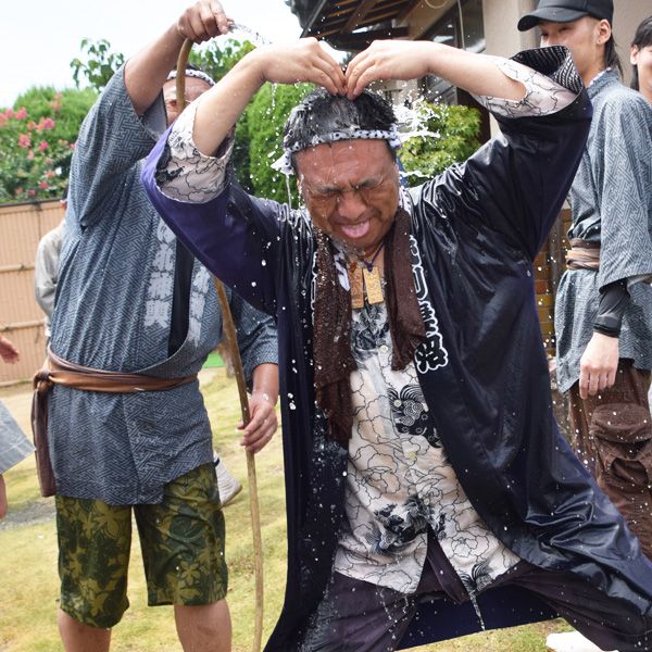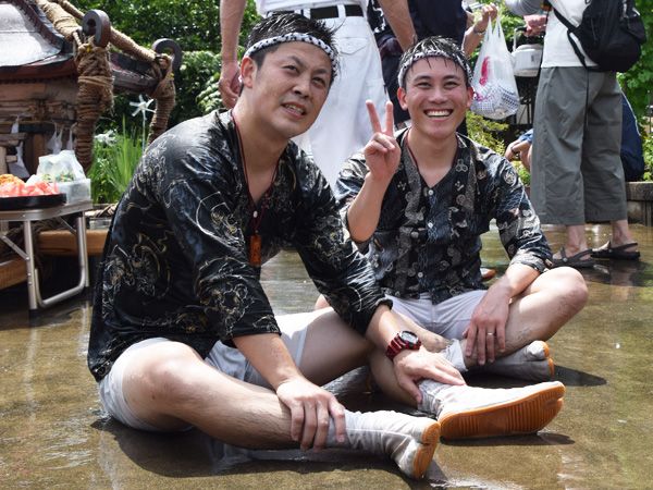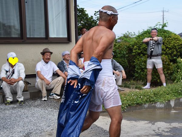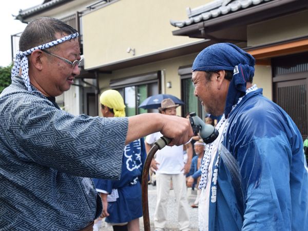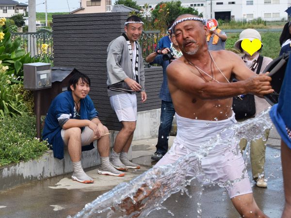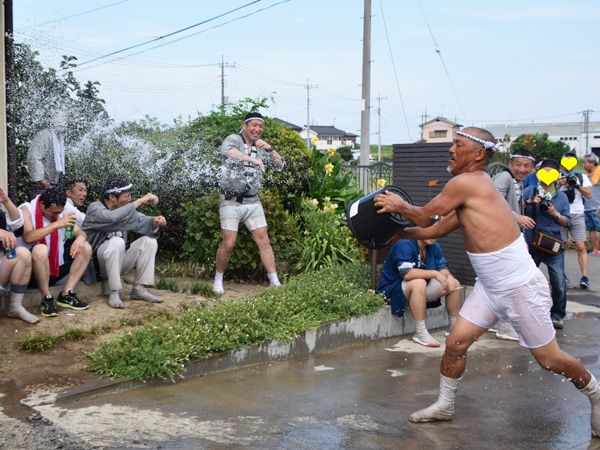 出来島あばれみこしでは、水掛けは縁起物だからね。