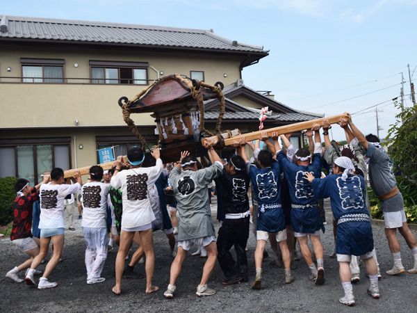 肩から背中にかけて、いかにも一生懸命お神輿を担いだかのように