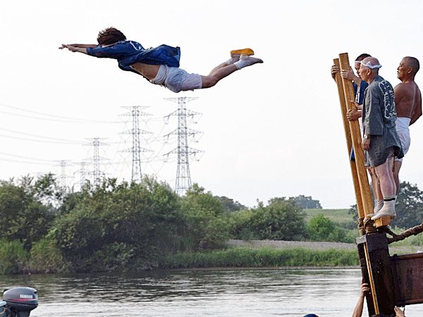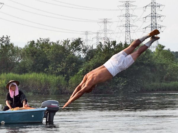 16時過ぎから始まった利根川飛び込みタイム、あまりの珍しい光景に