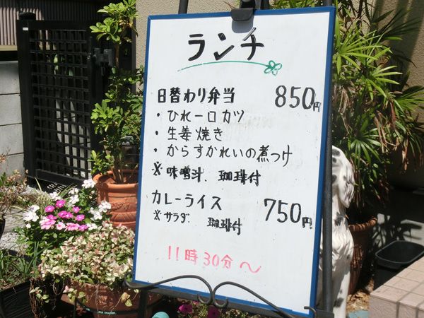 店頭ボードが玄関の内側に見えて、11時半からランチやってることが判明。