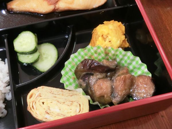 なすの味噌炒め、きれいに巻いた卵焼き、甘くしないかぼちゃサラダ、