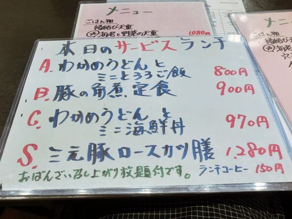 ランチメニューはこんな感じで、レギュラーメニュー数種類に