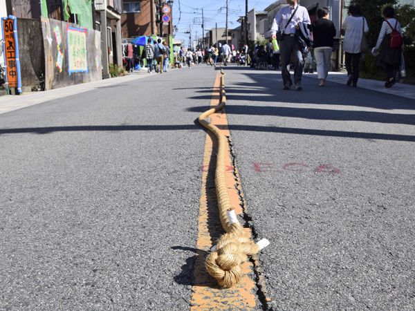 午後は路上に長い綱が横たわり、うちわ祭を思い出しちゃったけど