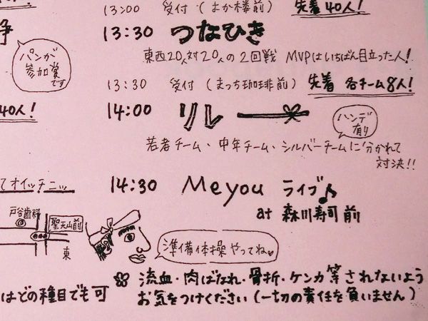 「流血・肉ばなれ・骨折・ケンカ等されないようお気をつけください」