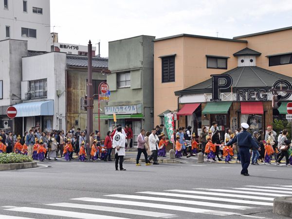 あれま。 駅のすぐそば、駅西通りで踊ってるよ。