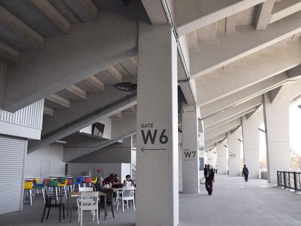 爽やかな色合いがセンス良い、洗練されたスタジアムですな