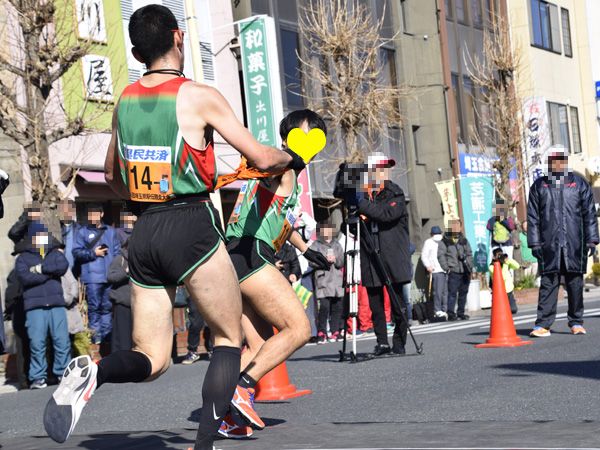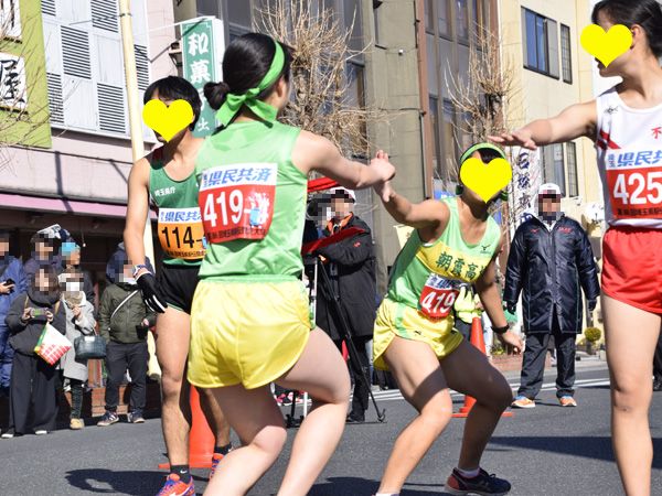 少し外に出て、目の前でタスキ渡しを見たり(^^)