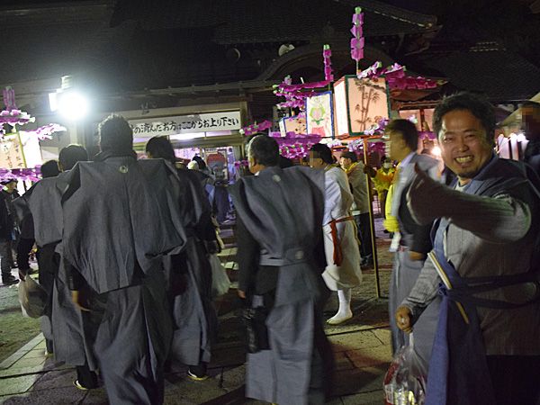 万灯を先頭に、お坊様方と、大人数の福男・福女さんたち。