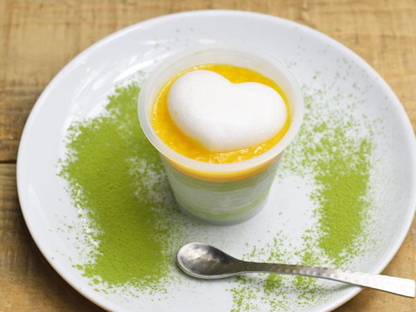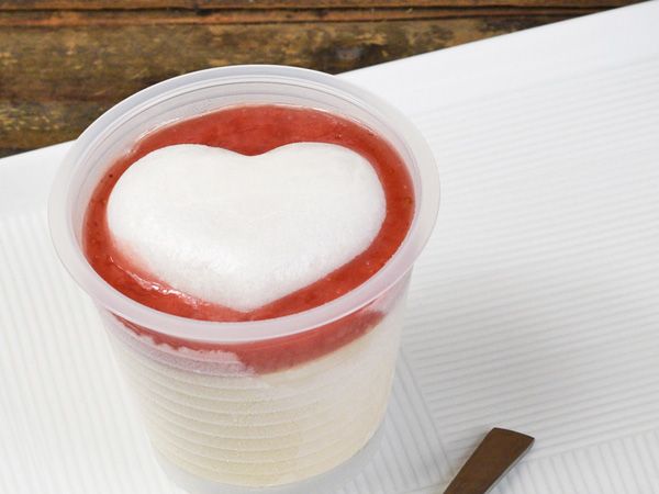 可愛いハート形のもなかの皮を飾った、お持ち帰り用カップジェラート。