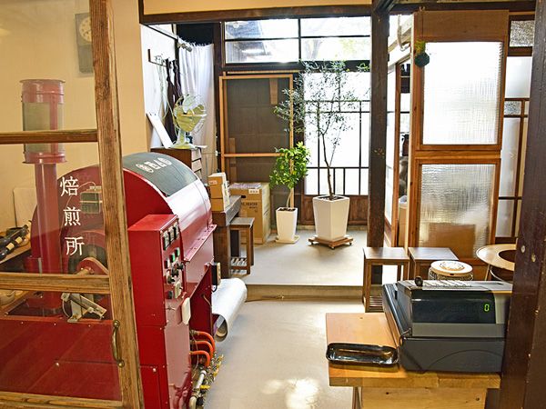 昔は薬屋さんだったというこの建物、奥は 焙煎工房 になっているんですが…