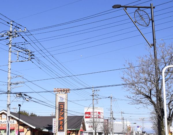 とくに商店街という訳でもない大通り沿いは大抵、味気ない街路灯の場合が多いので