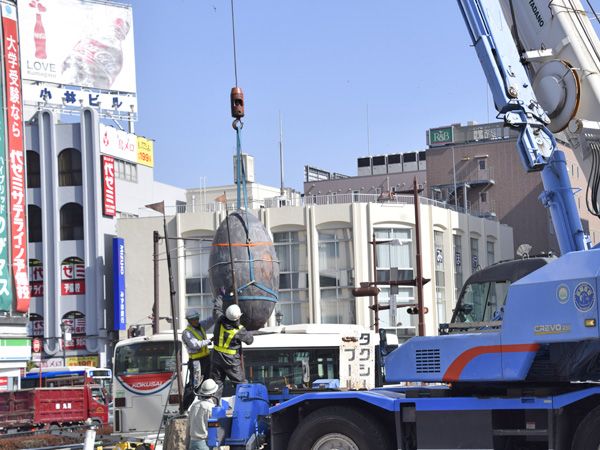 でかいクレーンで持ち上げ… 微調整? それとも移動??