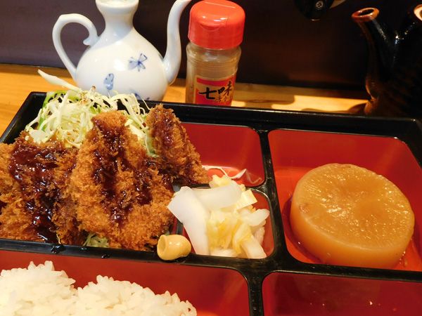 さくっと揚げた柔らかいヒレカツは3枚、からし添え。