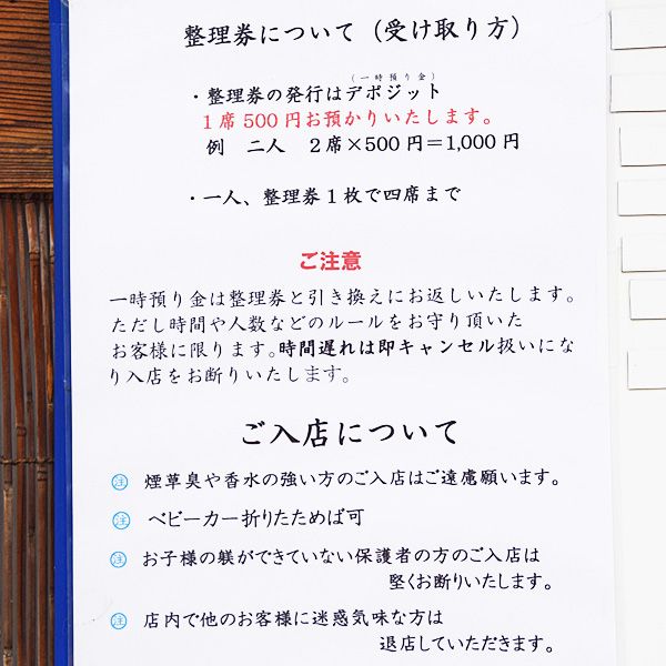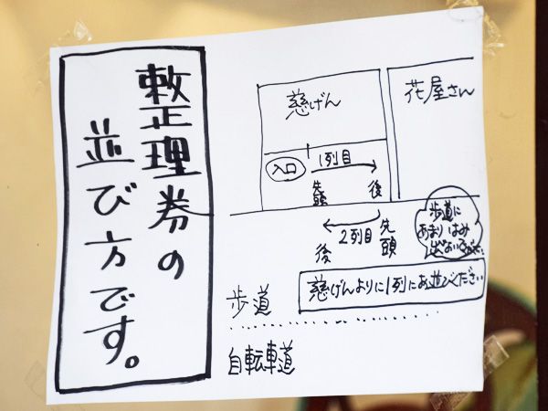 整理券待ちの列は掲示物の通り、隣のお店のご迷惑にならぬよう並びませう。