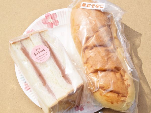 コッペパンの「黒豆きなこ」、あと桜あんのサンドイッチを。