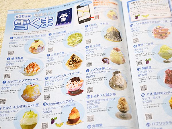 雪くまガイドは、「熊谷うどん」「妻沼茶豆」「熊之糀(糀甘酒)」と合同の冊子形。