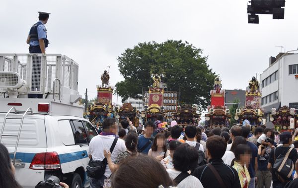 しかも山車・屋台が再び動き出すより 5分以上も前 から、おまわりさん達が