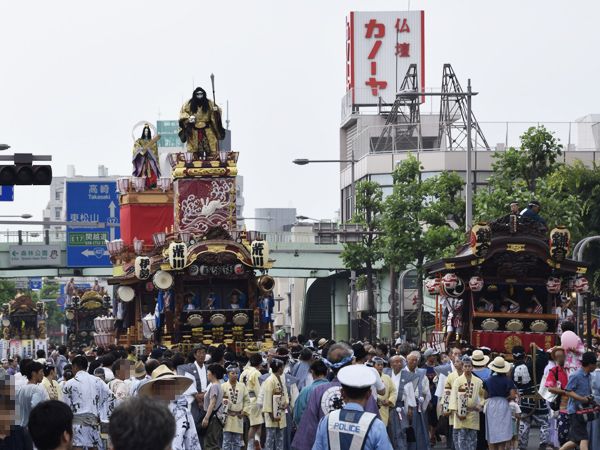 国道17号を石原方面まで進んだ山車・屋台は、折り返して東へ進み