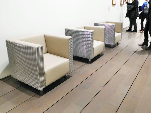 展示室の内外には、お洒落な椅子がたくさん。