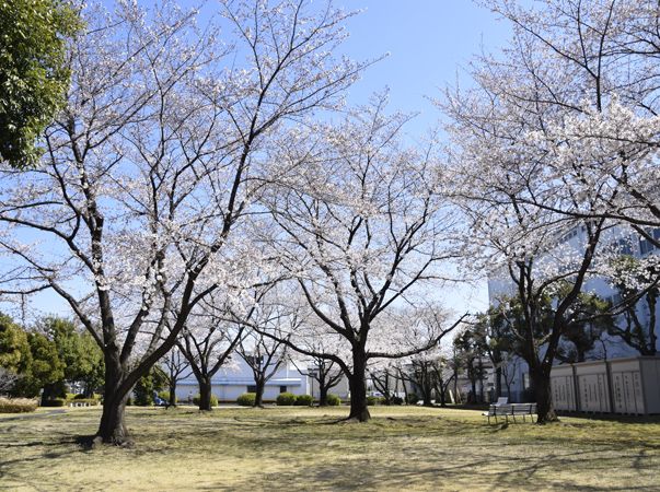 熊谷市問屋町・熊谷流通センターの中心辺りにある広場、桜の開花がかなり進んでいたよ