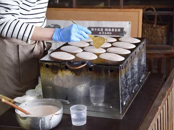 職人のお兄さん、生地の流し込みが均等で素晴らしい
